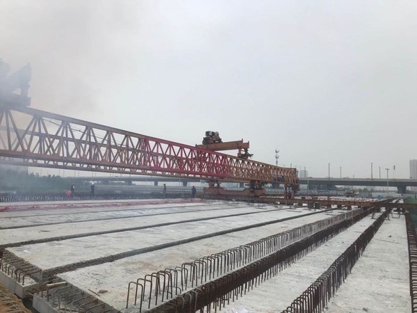 该桥桥梁断面采用两幅桥形式,桥梁全宽50.6米,全长184.2米。针对桥梁施工范围内涉及地铁4号线盾构顶进和贾鲁河综合治理等多部门多作业施工,我公司邀请了省内知名专家进行专项方案评审把关。在建设过程中,精心组织,统筹协调,克服了现场条件复杂、汛期施工难度大等不利因素的影响,抓质量,促进度,保安全,顺利地实现了桥梁合龙这一关键节点。